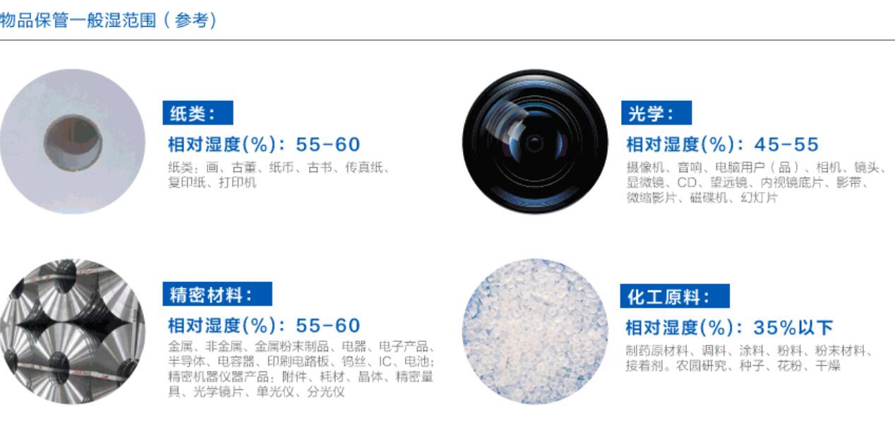 我國幅員遼闊、南北地域差異大,從而導致南北的溫濕度變化也大相徑庭,在我國南方,春夏兩季的雨水相對較多,相對濕度也比較大。在工廠和企業的日常生產中,當原材料和制成品遇到空氣中的相對濕度,比加工工藝、倉庫儲存所要求的相對濕度標準高時,原材料或制成品就會出現吸濕的情況,從而對生產原料或制成品的質量造成不同程度的影響和危害。比如說食品、藥品、木材、紙張、紡織品等容易受潮發霉變質,而電子電器、機械設備以及五金工具等受潮,則容易出現短路漏電、氧化銹蝕等問題。